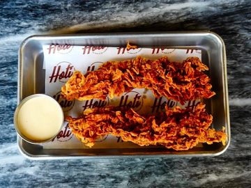 Fried Chicken, slaw, Pickles, Blue Cheese Sauce & Spicy Mayo.